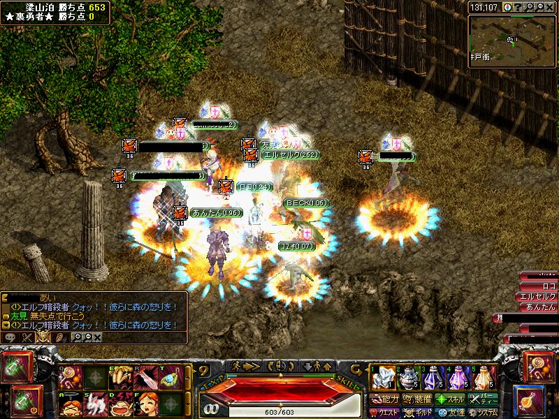 今日のメンツはコルBIS1、天使1、弓2、テイマ1、WIZ1、槍1、姫1