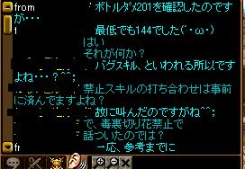 やたらと人数が多くて今日は2PTだった。といっても平均は180程度?二桁が沢山居た上に、低レベ同士でPT組ませたので穴がありすぎる。